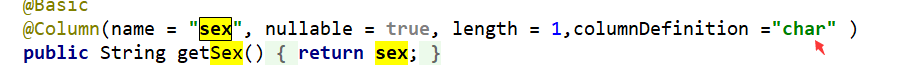 注意一点,因为char类型和byte的原因 ,.程序之后可能运行会报错,因为数据库是char,生成实体文件后变成了string.