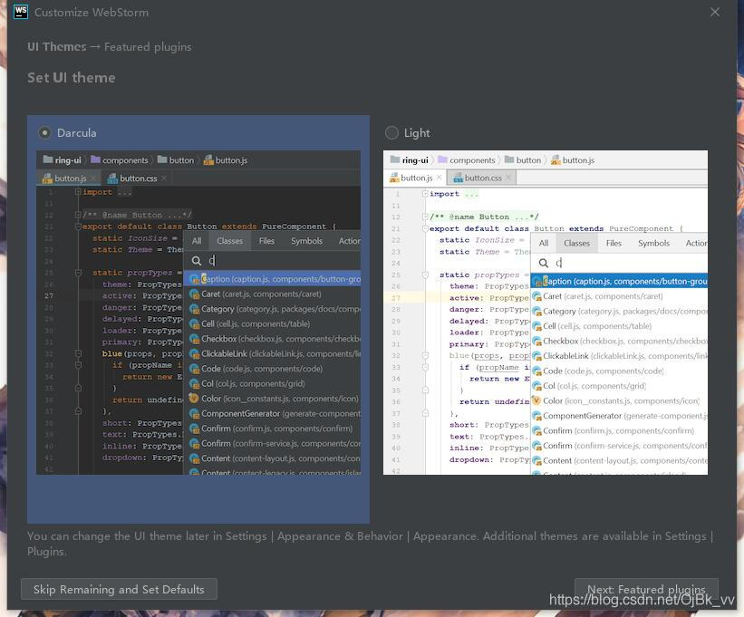 第二步:选择WebStorm主题