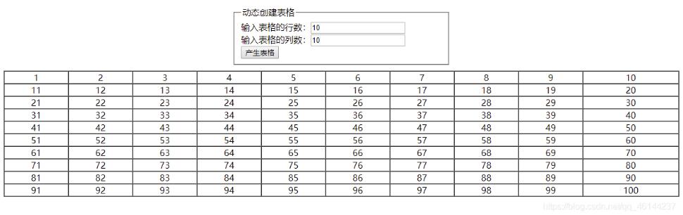 思路: JS中写函数----HTML中利用表单元素获取用户输入的行和列的值,调用JS中的函数。