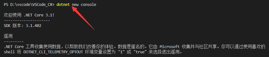 终端中输入 dotnet new console 即可创建项目