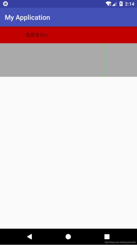描述:RecyclerView高度为100dp,item的高度为50dp,当绘制出竖直方向分割线的时候,item部分分割线未能显示,经过排查发现,分割线是绘制在RecyclerView的view上,item作为子view存在于RecyclerView的容器中,所以导致分割线绘制的一部分被遮挡,此处我使用系统提供的DividerItemDecoration也是效果一致的。如下图: