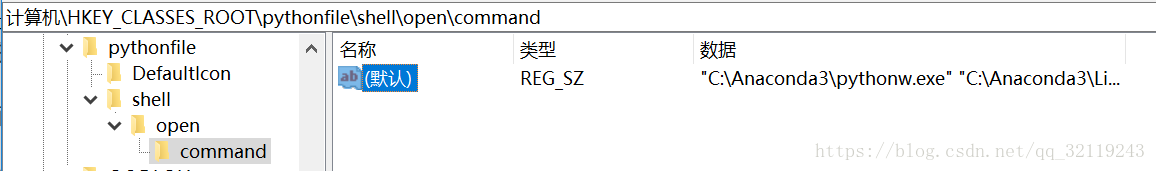 command项的设为"C:\Anaconda3\pythonw.exe" "C:\Anaconda3\Lib\idlelib\idle.pyw" "%1"
