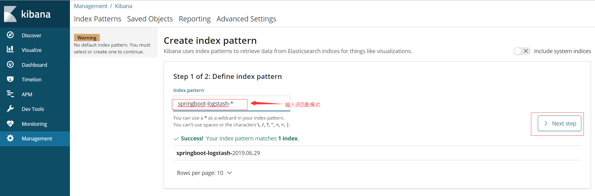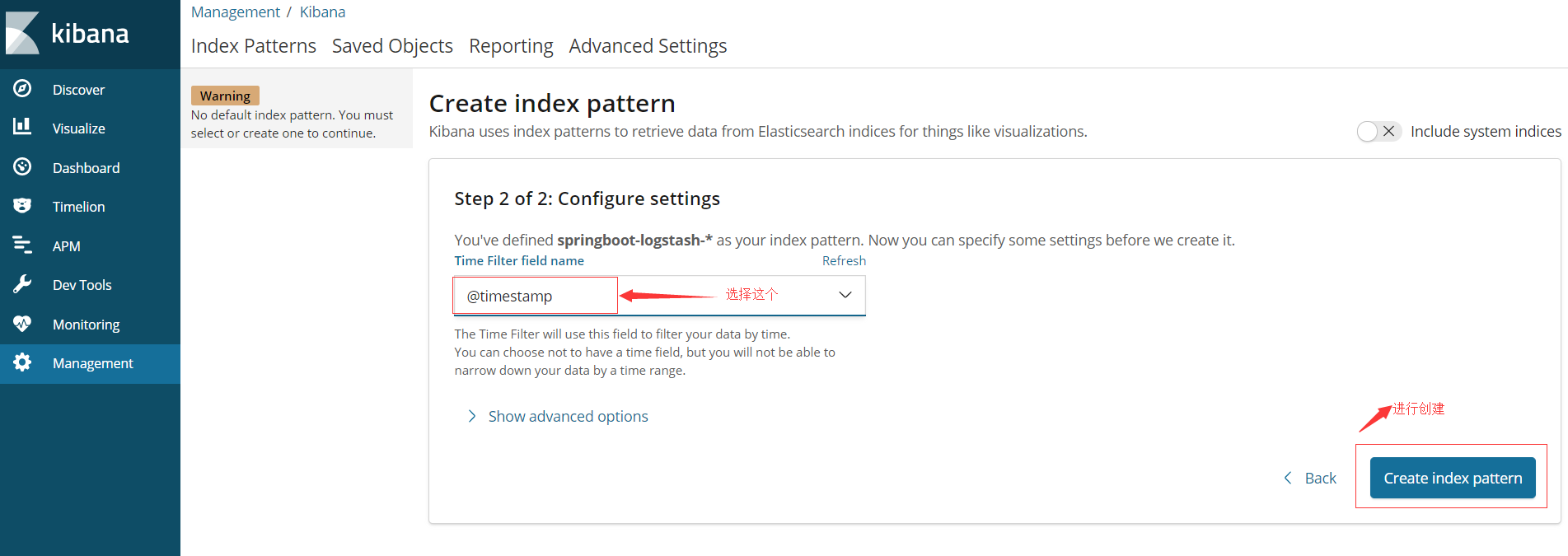 在kibana中查看日志信息创建index pattern