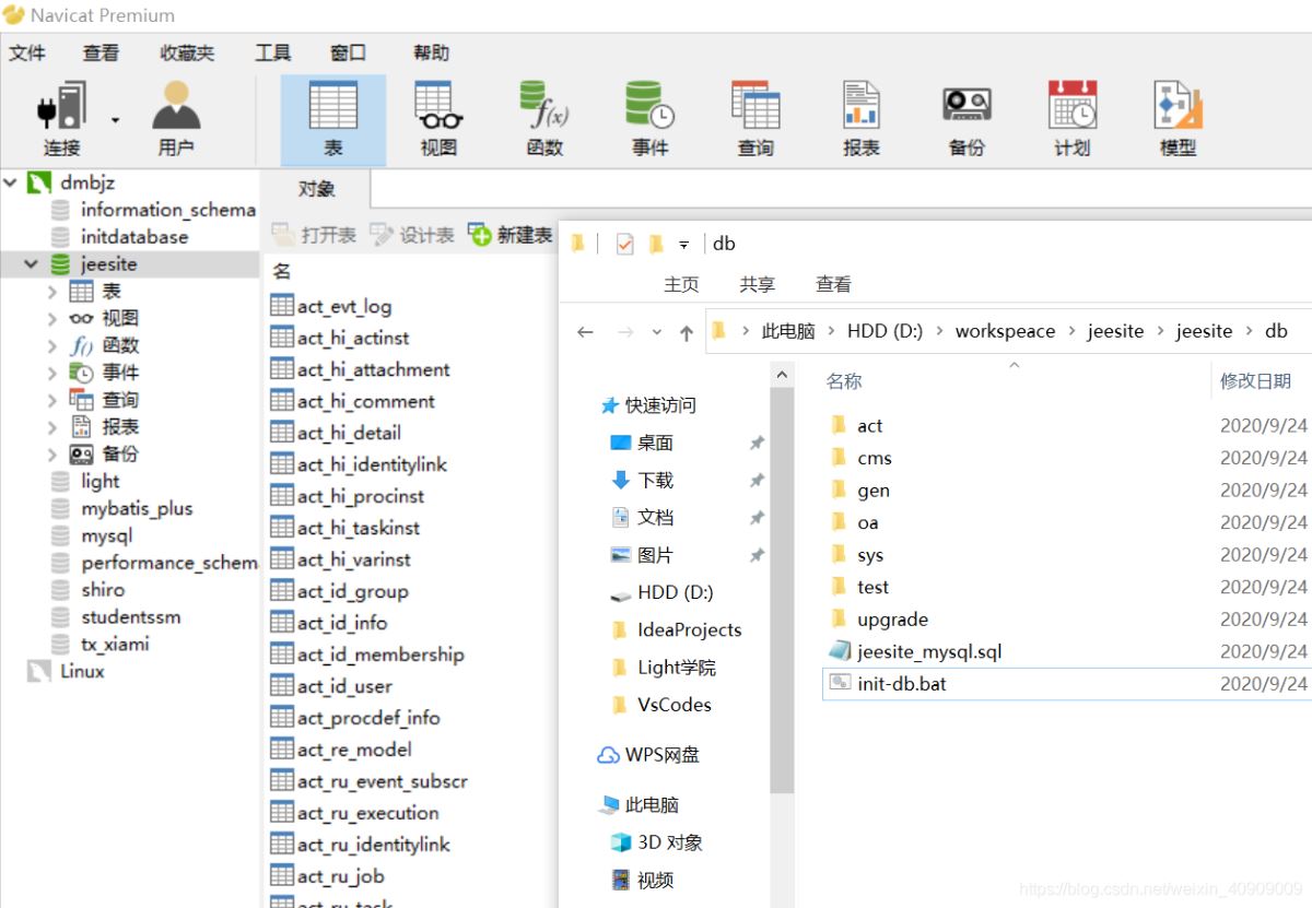4. 在navicat中创建 jeesite 数据库后运行 init-db.bat,创建出 jeesite3项目需要的表