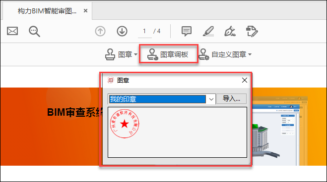 然后选择创建自定义图章,导入刚才做好的PDF格式图片印章即可。