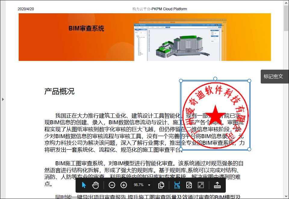 拖动到文档的任意位置即可实现电子印章的添加了,添加后的文档界面效果如下所示。