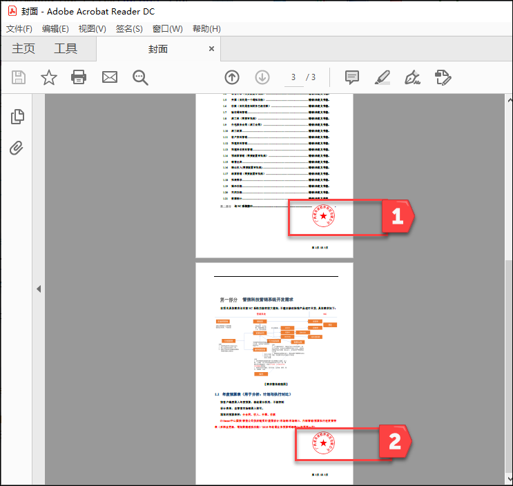 最后页面的效果如下所示,在每页的指定位置,都盖章我们的印章了。