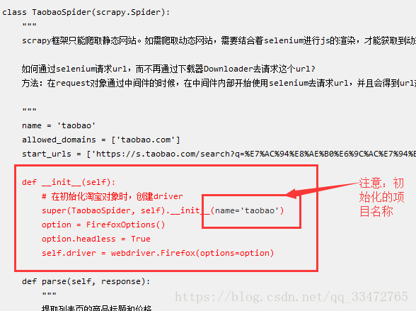 1、只存在一个爬虫文件的话,driver初始化函数可以定义在middlewares.py的自定义中间件中(如上述代码注释初始化部分)也可以在爬虫文件中自定义(如上述代码在爬虫文件中初始化)。
