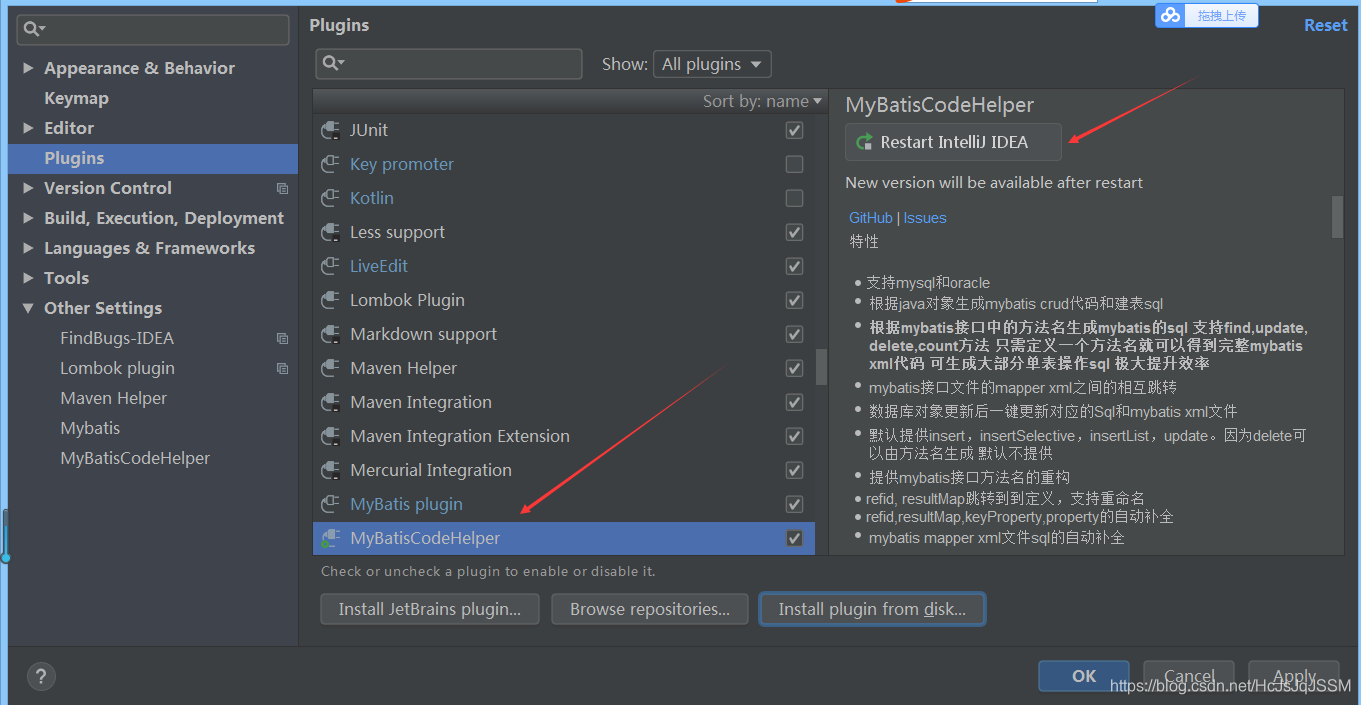 1.1  IDEA安装MyBatisCodeHelper插件.