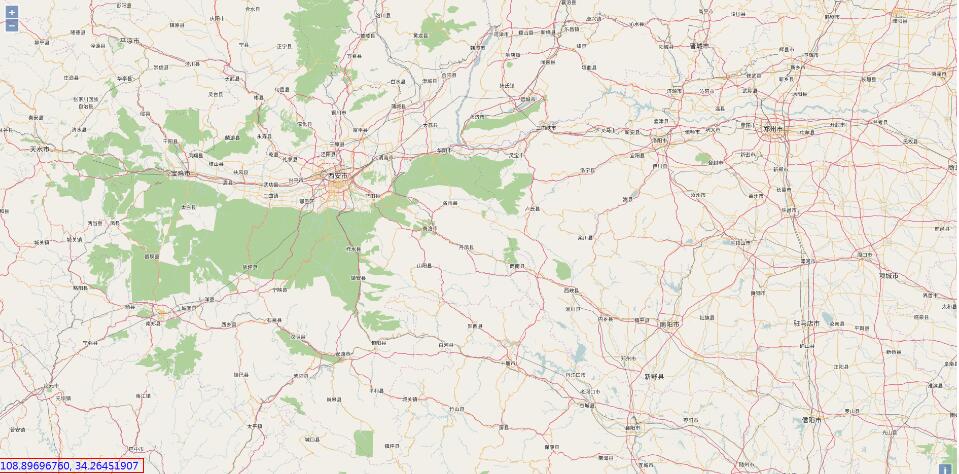 当鼠标在地图上移动时,会在左下角显示当前位置的地理坐标