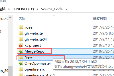 我在不同文件夹下拉取的相同的远程仓库一个是在D:/Source_code/MergeRepo 另一个在D:/Source_code/New/MergeRepo