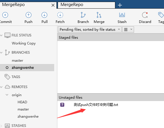 我先将其中一个仓库增加一个文件 “测试push文件时冲突问题.txt”