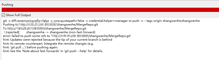 执行,commit ,push,然后就,,出现错误,远程仓库已经更新的,不能推送。