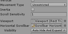 另外说一下有几个ScrollView自带的API需要设置一下,一个事Movement Type设置成Unrestricted,以及关闭Inertia,这样才能关闭ScrollView自带的最大距离移动控制不会导致在松手吸附过程中因为拖动距离大于了左右两边限制而最终的移动结束的坐标位置不对。