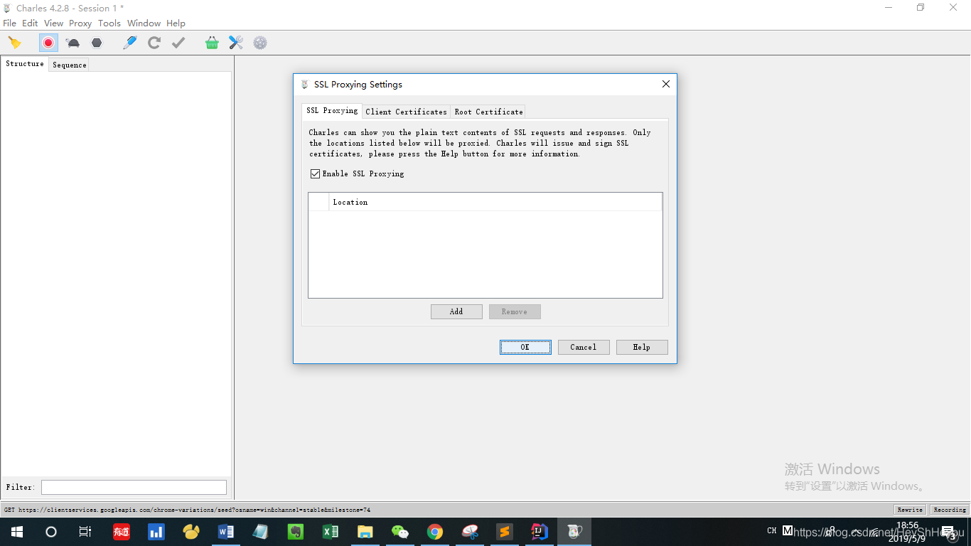 安装完成ssl证书后,需要在Charles中开启ssl代理设置,在Proxy->SSL Proxying Settings中,勾选Enable SSL Proxying,