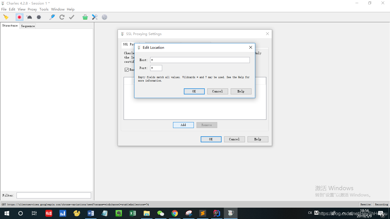 点击add,新增访问的目标地址,根据提示,空的host与port匹配所有的值,可以使用*与?进行匹配,此处host与port均填写*。
