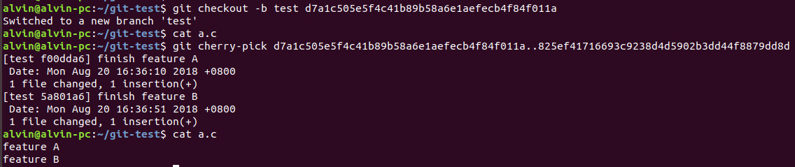 刚刚是一个个提交cherry-pick到master分支,但如果有100个commit要合并到master分支呢?总不能这样一个个操作吧?git一样帮你想到了,它提供了一个区间操作方法。具体来讲是这样的: