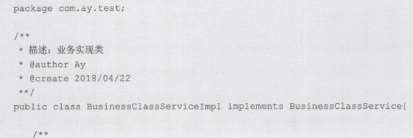 首先,在项目包com.ay.test 下创建业务接口类BusinessClassService,具体代码如下: