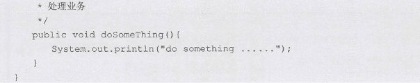 BusinessC lassService 业务接口类可以理解为日常开发业务创建的接口类, 接口中有一个简 单的方法doSomeThing 。然后,开发业务类的实现类BusinessClassServiceImpl,具体代码如下: