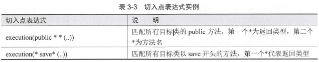 下面举一些execution 的使用实例,具体内容见表3 -3 。