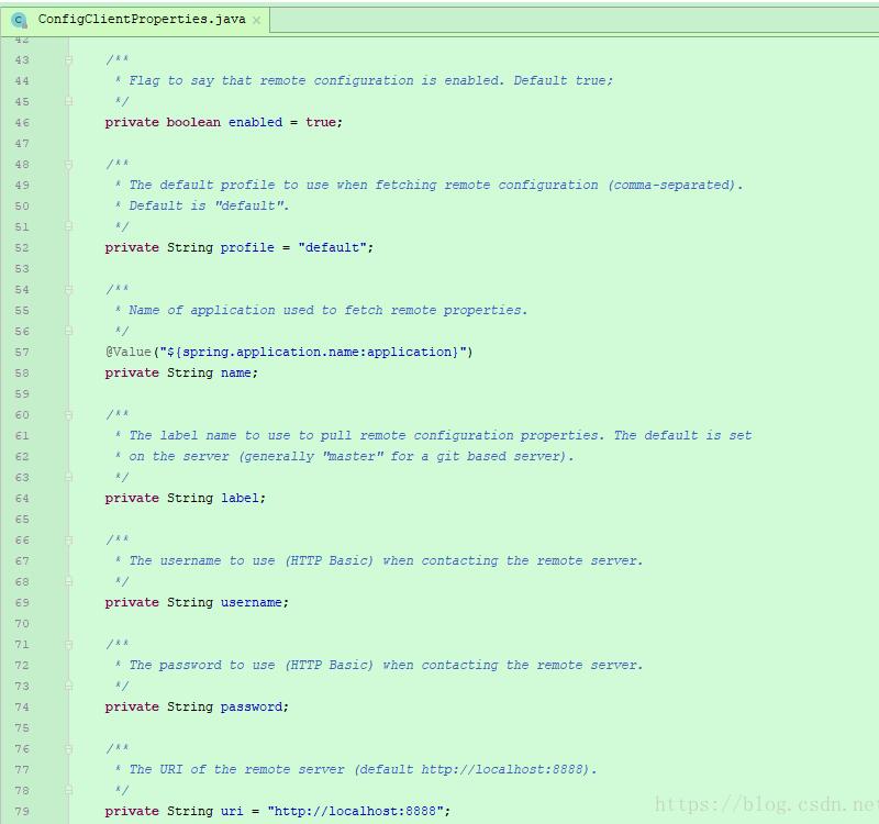 不难看除,原代码原来是这个样子,入口有了,更加方便查看源代码的原理.看方法入参,似乎我们客户端需要提供者几个字段的配置.name profiles label...