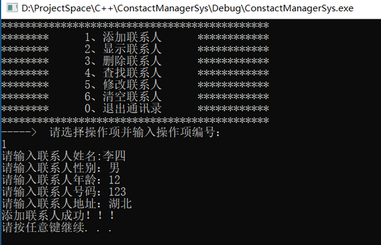 cout << "添加联系人成功!!!" << endl;