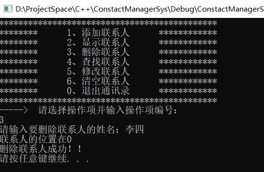 - 删除联系人:按照姓名进行删除指定联系人