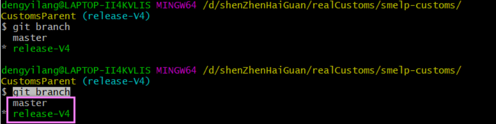 三、执行切换分支的命令 git checkout -b release-v4 origin/release-v4