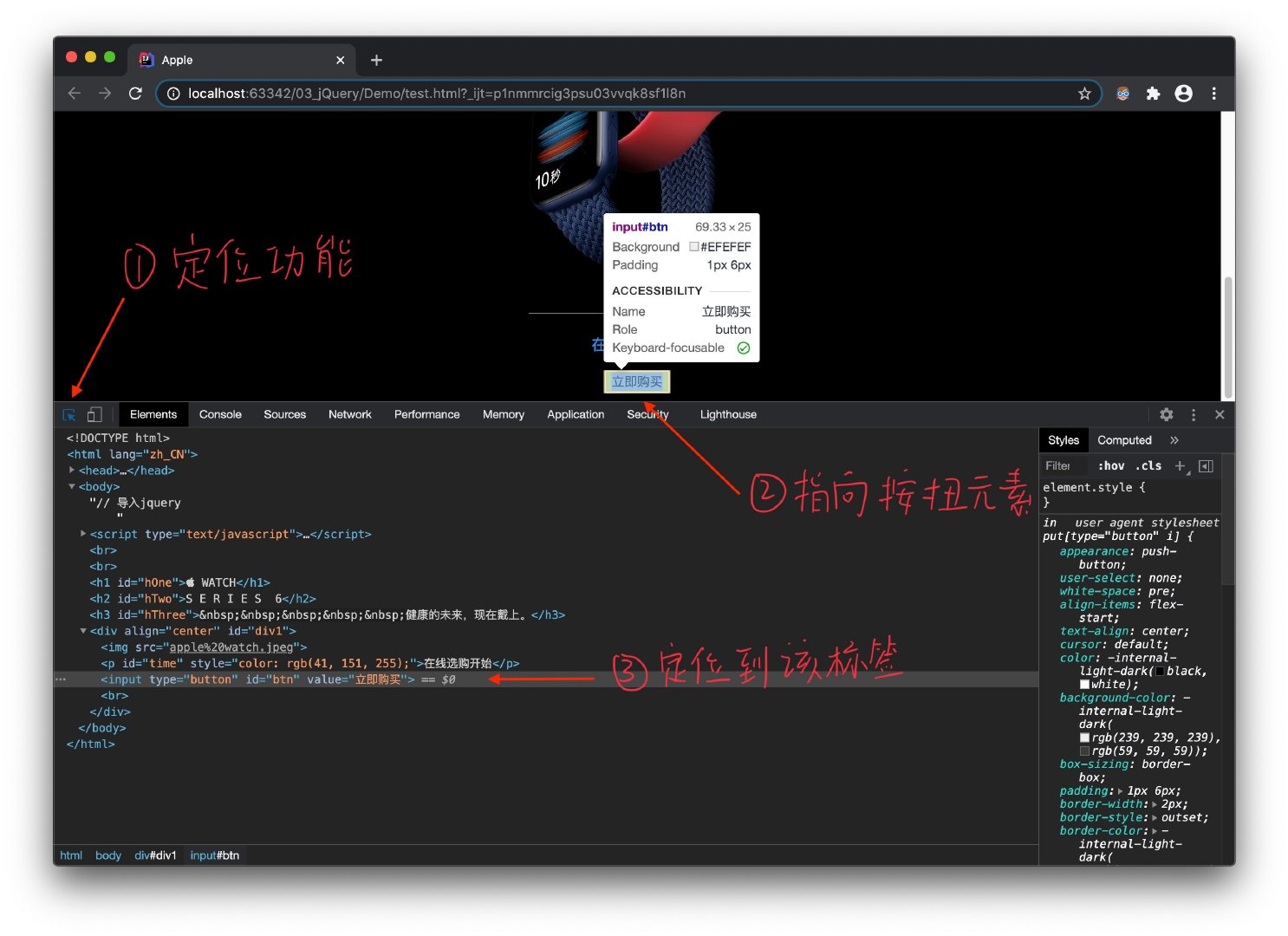 (2)找到按钮元素标签所在位置