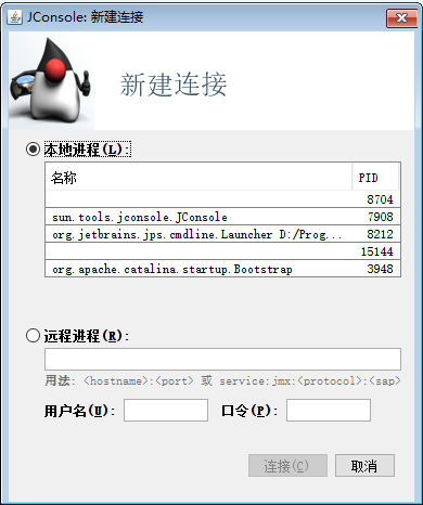 这里可以看到我本机目前运行了一个 JConsole ,一个 idea ,还有一个启动的 tomcat 的源码。