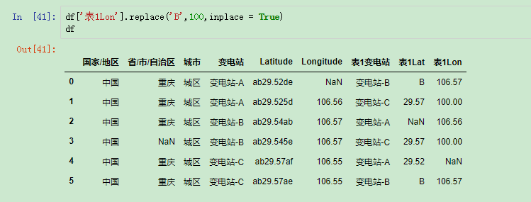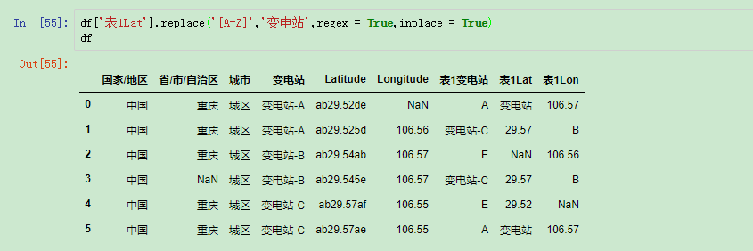 比如要把变电站都改为transformer_substation,或者是把Latitude列的前面的ab改为AB: