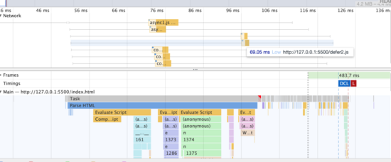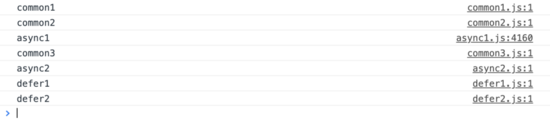 我一共写了2个async和2个defer标签,其它的都是普通标签.其中async1.js里面有4000行代码,其它都是一个console.log而已