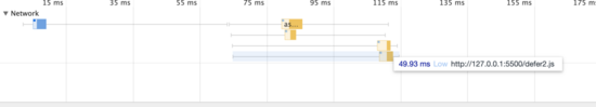 从上面看,下载时机async和普通模式都是同样并行下载,只有defer是最后才下载(http1.1有并发数量限制,可是这里并不是并发限制,当我删除common的引用后,我发现defer永远都是最后下载的)