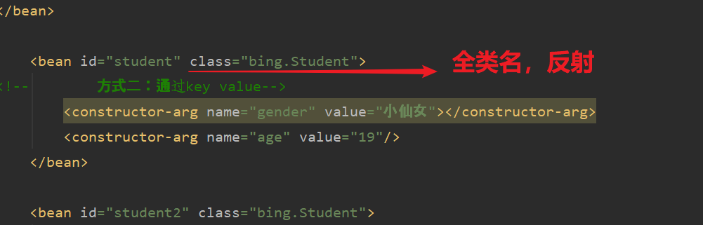 <bean id="student2" class="bing.Student">