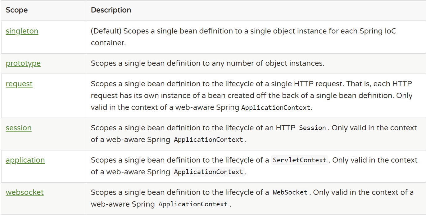<!-- the following is equivalent, though redundant (singleton scope is the default) -->