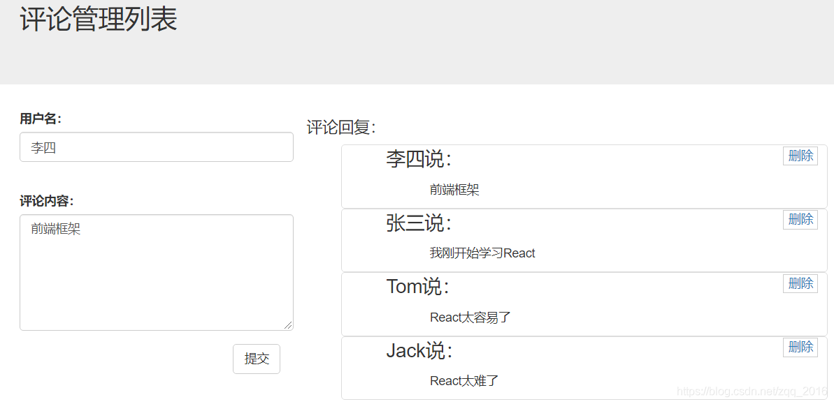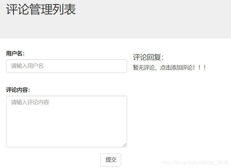 1. 手动输入用户名和评论内容,点击提交;输入内容被追加到右侧评论列表;