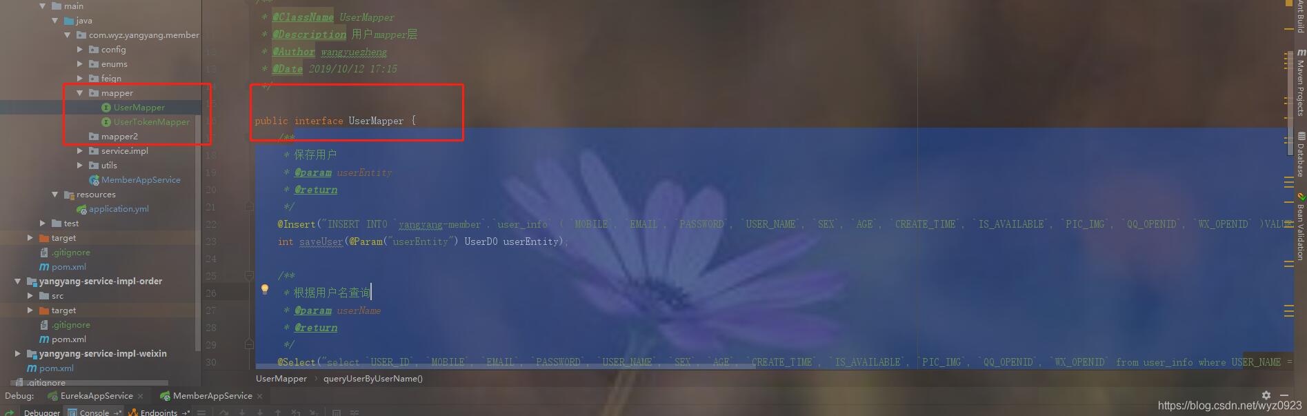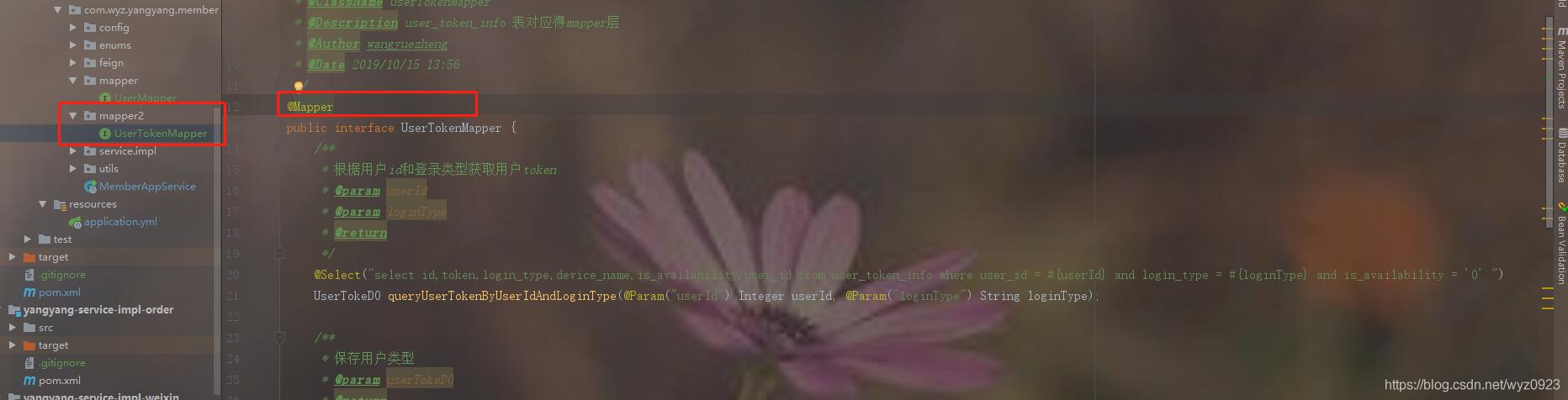 Consider defining a bean of type ‘com.wyz.yangyang.member.mapper2.UserTokenMapper' in your configuration.