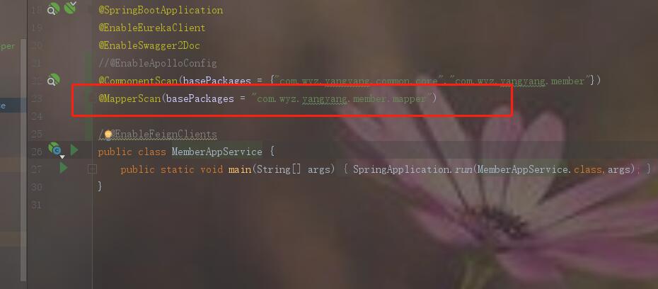 点解注解发现配置类上有个@MapperScan扫描注入。发现这伙计需要操作数据库。而我接收负责的项目用的是传统的@Mapper注入。