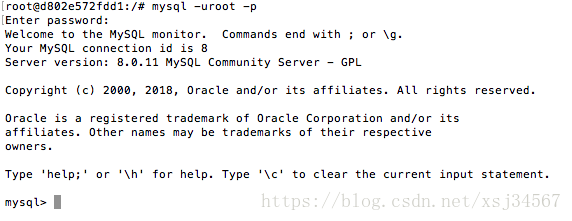 Welcome to the MySQL monitor. Commands end with ; or \g.