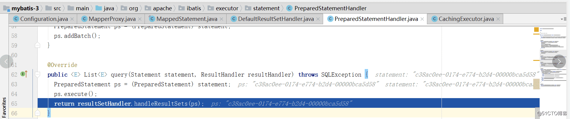 步骤5 进入DefaultSqlsession,选择执行的执行器,先选择缓存执行器,缓存没有选择默认的简单执行器,如果mybatis有配置,就选择配置的执行器,并设置预处理参数。