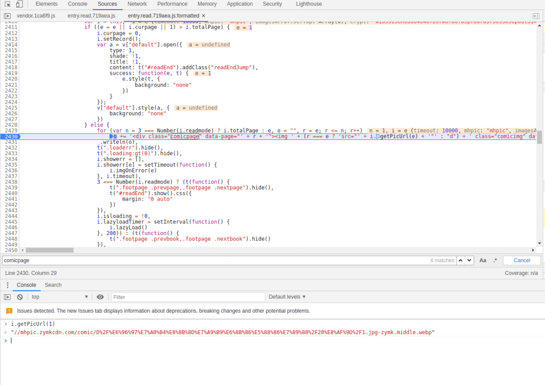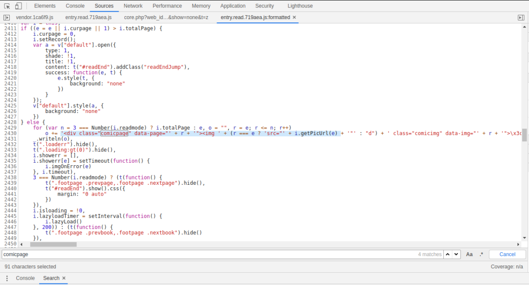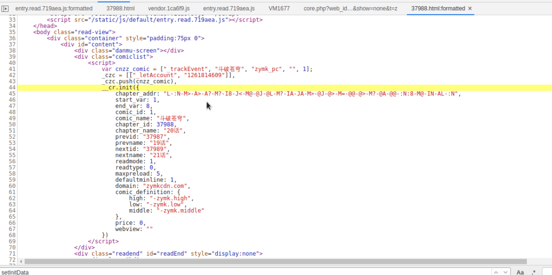 打开页面源代码,就在这里啦,不仅仅有图片的URL加密值,还有其他数据,这些都是在后面图片URL拼接需要使用到的