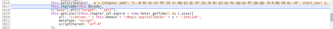 现在我们再重新看看那个加密函数,它无非就是遍历那个加密值的每个字符,获取其Unicode值,再与__cr.chapter_id进行相关运算,然后再得到的Unicode数值返回字符