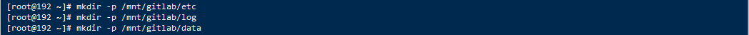 mkdir -p /mnt/gitlab/etc mkdir -p /mnt/gitlab/log mkdir -p /mnt/gitlab/data