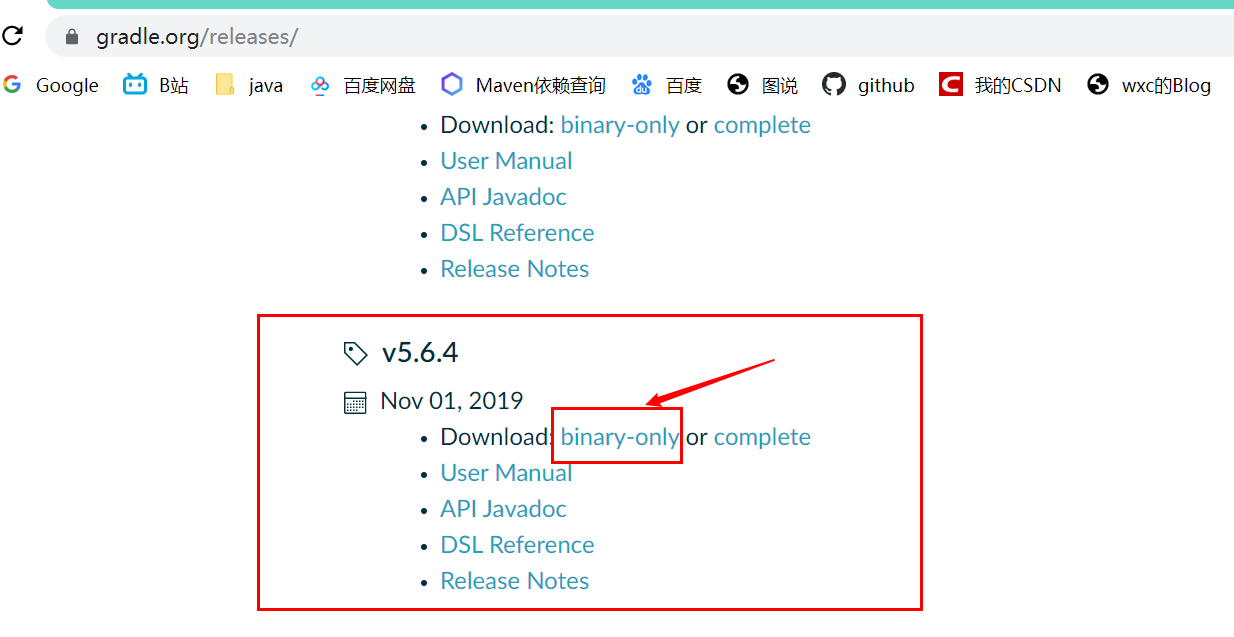 在这里我们可以看到对应gradle版本是5.6.4,所以接下来我们要去官网下载5这个版本的gradle