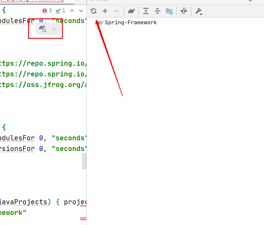 点击下面右边那个刷新,然后它会下载依赖,要挺久的
