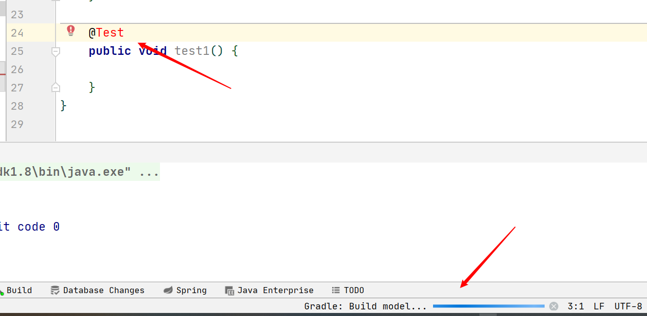 那如果我们想进行单元测试呢,加上test,让他导入junit4,等到导入完成后我们进行测试,发现报错了