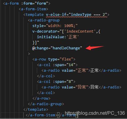 然后在表单域子节点中绑定@change="handleChange"函数,