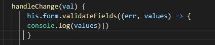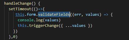 果然是,个人猜测是输入框的change事件赋值发生在表单域的validateFields()事件之后,导致取到的值是修改前的值
