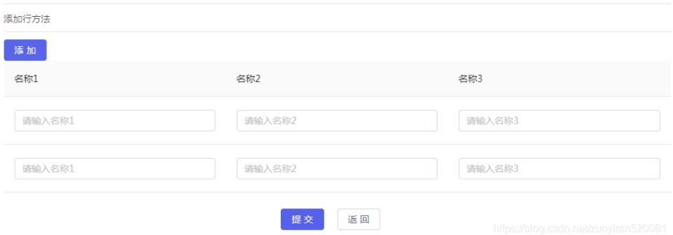 注:如果dataSource定义为空数组,则页面初始化时表格没有输入框,需要点击添加行,如下图