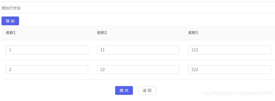 点击添加按钮,在表格中添加新的空白行(如下图所示),在点击提交的时候获取空白行的数据